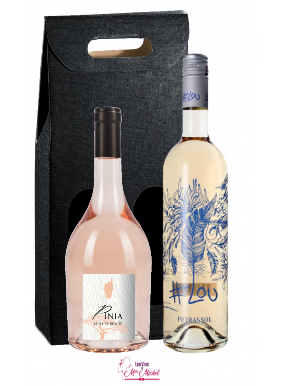 Coffret Duo - Vin Rosé un jolie Duel entre La Corse et La Provence: 1 Bouteille 75cl IGP Ile de Beauté Rosé "Pinia" - 1 Bouteille 75cl Côtes de Provence "LOU"